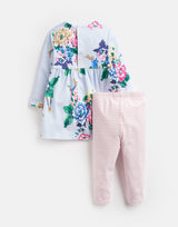 In pretty new season prints this set, that includes an empire line dress and comfortable leggings, is a great asset to her first wardrobe. Cut generously from soft cotton, easy to get on and easy to get off. Hand me down worthy too.